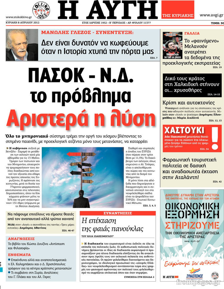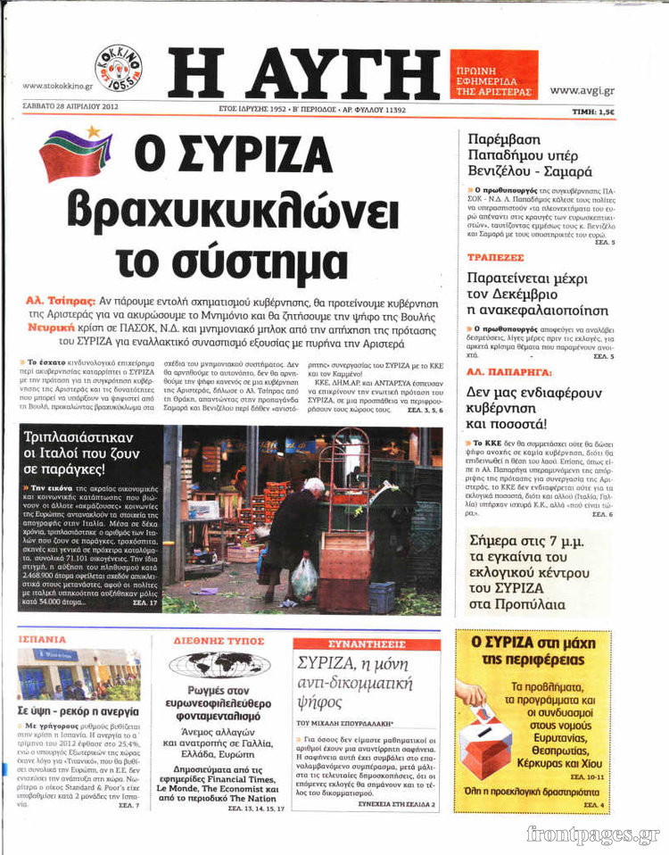 Αφού λοιπόν το σύστημα πανικοβλήθηκε από τον ΣΥΡΙΖΑ μετά βραχυκύκλωσε και στο τέλος δόθηκε η αριστερή λύση όπως βλέπουμε και στη φωτογραφία παρακάτω. Στην πορεία της αριστερής λύσης χάσαμε και τη ΔΗΜΑΡ.