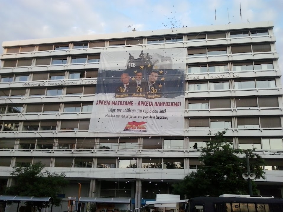 Σχετικά με τη σημερινή ανάρτηση πανό στο Υπουργείο Οικονομικών από το ΠΑΜΕ, με υβριστική αναφορά στον ΣΕΒ: